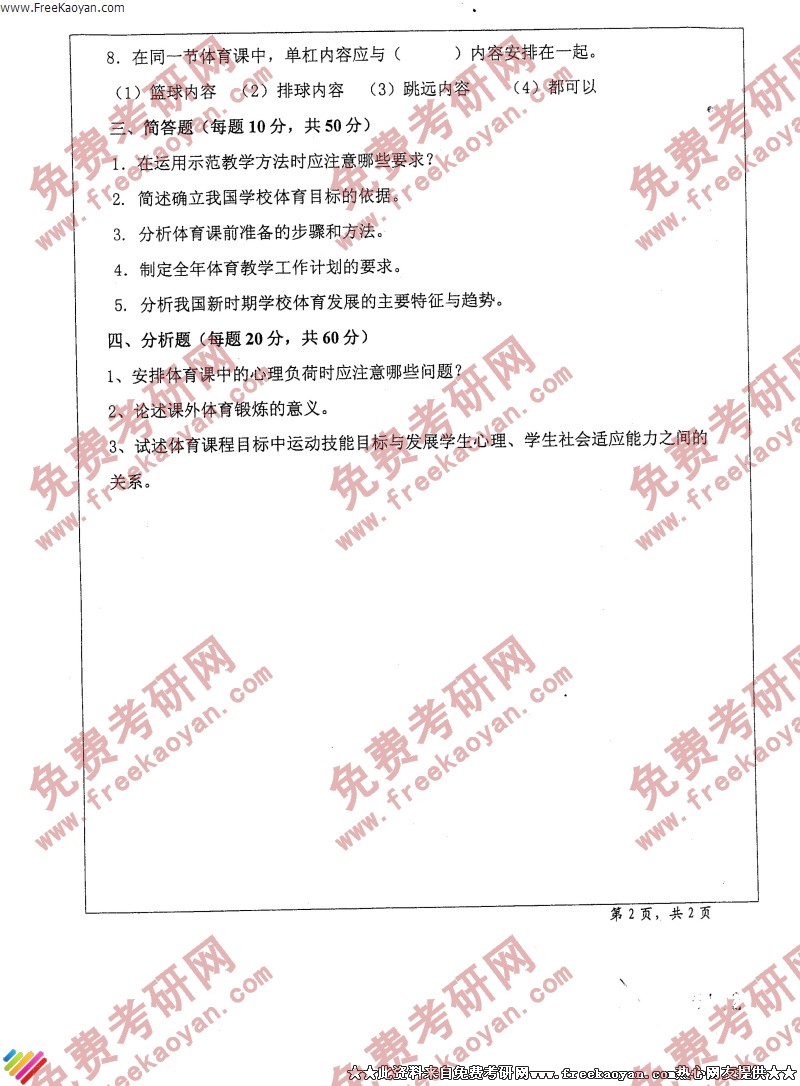 专业课考研经验 本站小编 FreeKaoyan 2018-01-22浙江师范大学2005年考研真题-世界通史