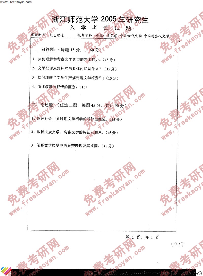 专业课考研经验 本站小编 FreeKaoyan 2018-01-22浙江师范大学2005年考研真题-思想政治教育学