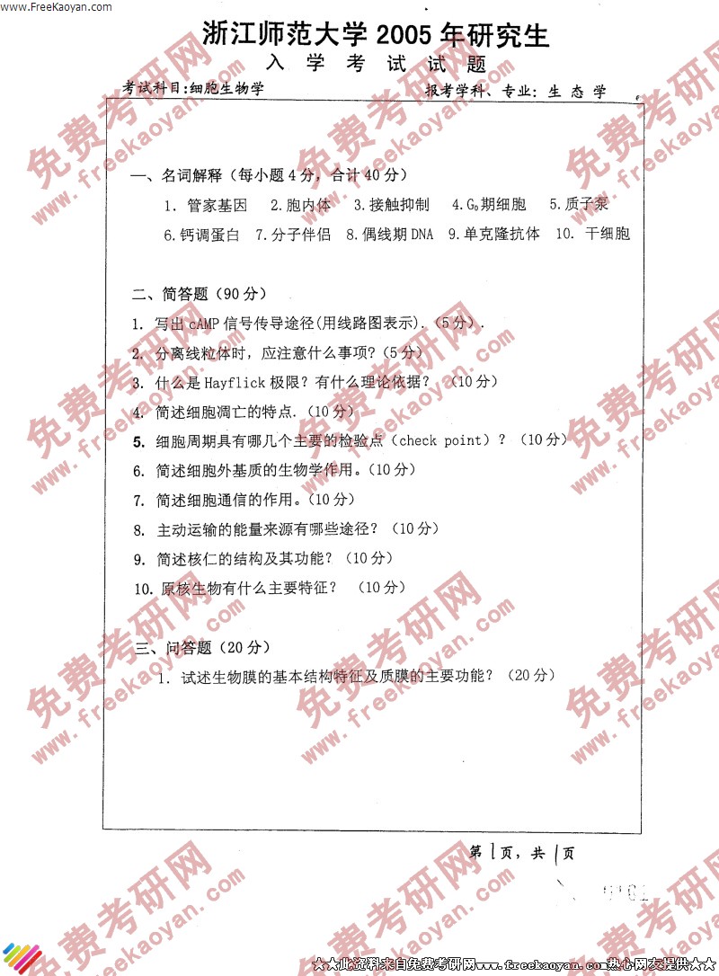 相关话题/浙江师范大学 考研真题 细胞生物学