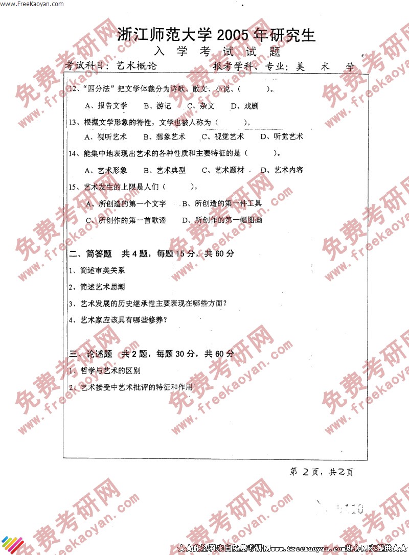 专业课考研经验 本站小编 FreeKaoyan 2018-01-22浙江师范大学2005年考研真题-文艺理论