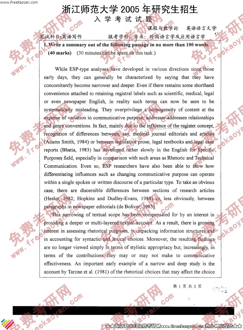 专业课考研经验 本站小编 FreeKaoyan 2018-01-22浙江师范大学2005年考研真题-西方文论