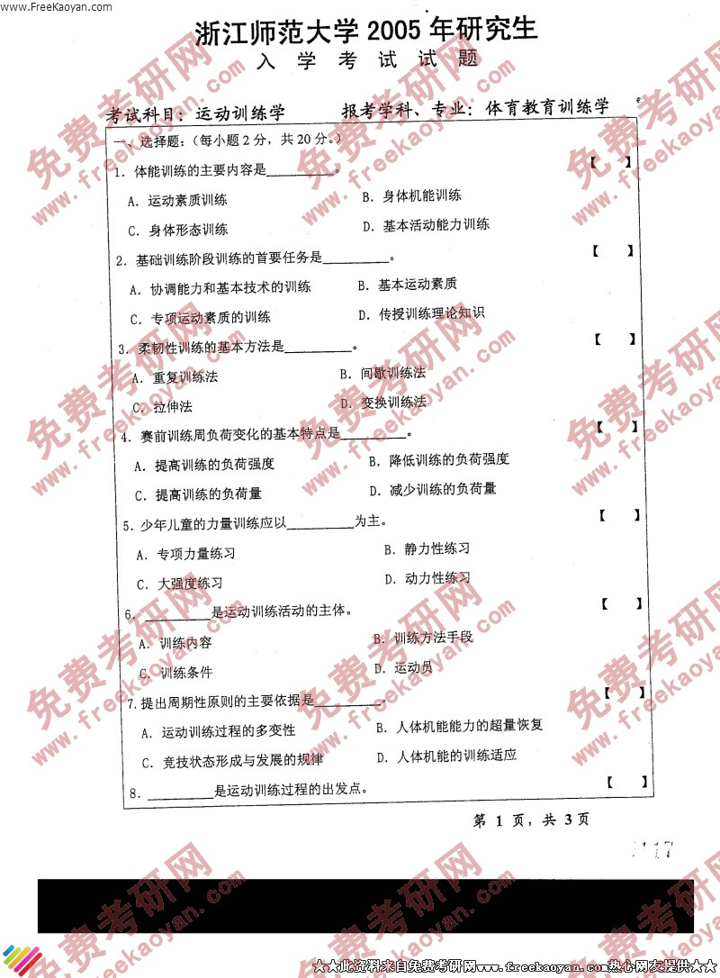 专业课考研经验 本站小编 FreeKaoyan 2018-01-22浙江师范大学2005年考研真题-体育学