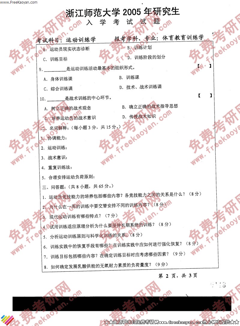专业课考研经验 本站小编 FreeKaoyan 2018-01-22浙江师范大学2005年考研真题-体育学