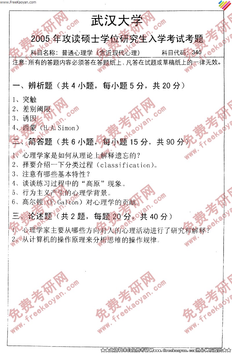 相关话题/武汉大学 考研真题 心理学