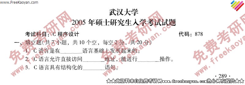 武汉大学2005年考研真题-C程序设计