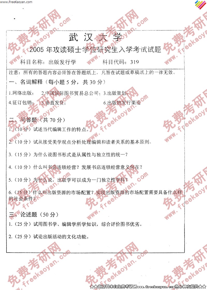 专业课考研经验 本站小编 FreeKaoyan 2018-01-22武汉大学2005年考研真题-比较文学与世界文学