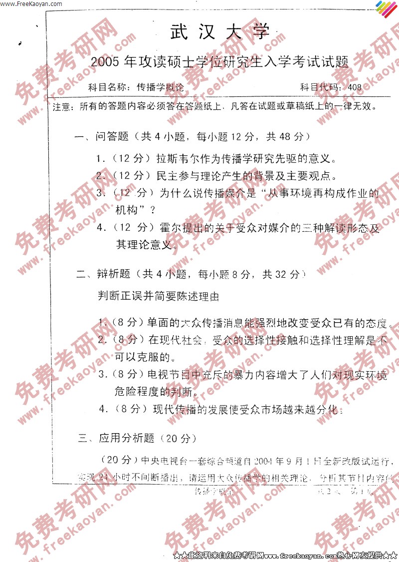 专业课考研经验 本站小编 FreeKaoyan 2018-01-22武汉大学2005年考研真题-比较文学与世界文学