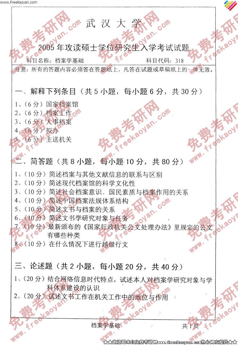 专业课考研经验 本站小编 FreeKaoyan 2018-01-22武汉大学2005年考研真题-出版发行学