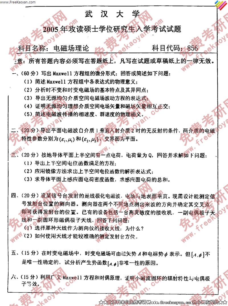 专业课考研经验 本站小编 FreeKaoyan 2018-01-22武汉大学2005年考研真题-典籍与文化综合知识