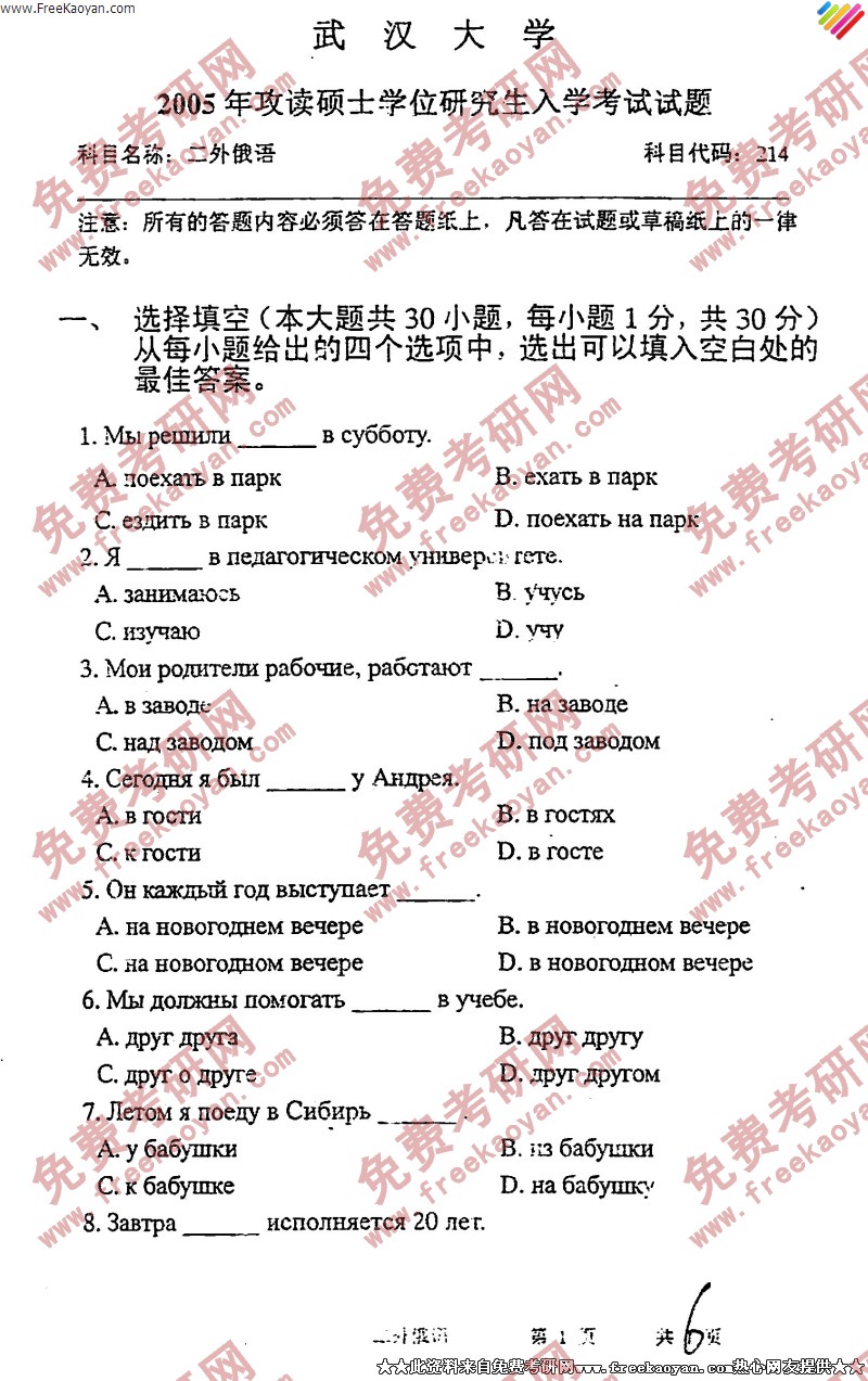 专业课考研经验 本站小编 FreeKaoyan 2018-01-22武汉大学2005年考研真题-德语实践与概况