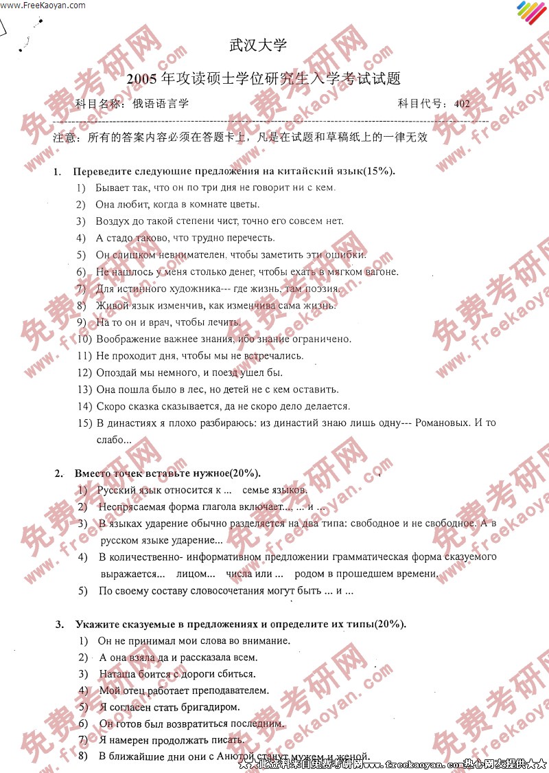 专业课考研经验 本站小编 FreeKaoyan 2018-01-22武汉大学2005年考研真题-俄语