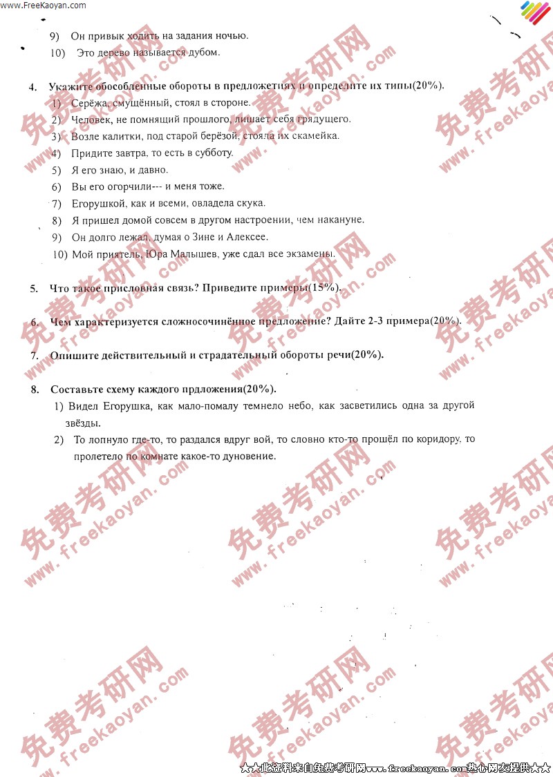 专业课考研经验 本站小编 FreeKaoyan 2018-01-22武汉大学2005年考研真题-俄语