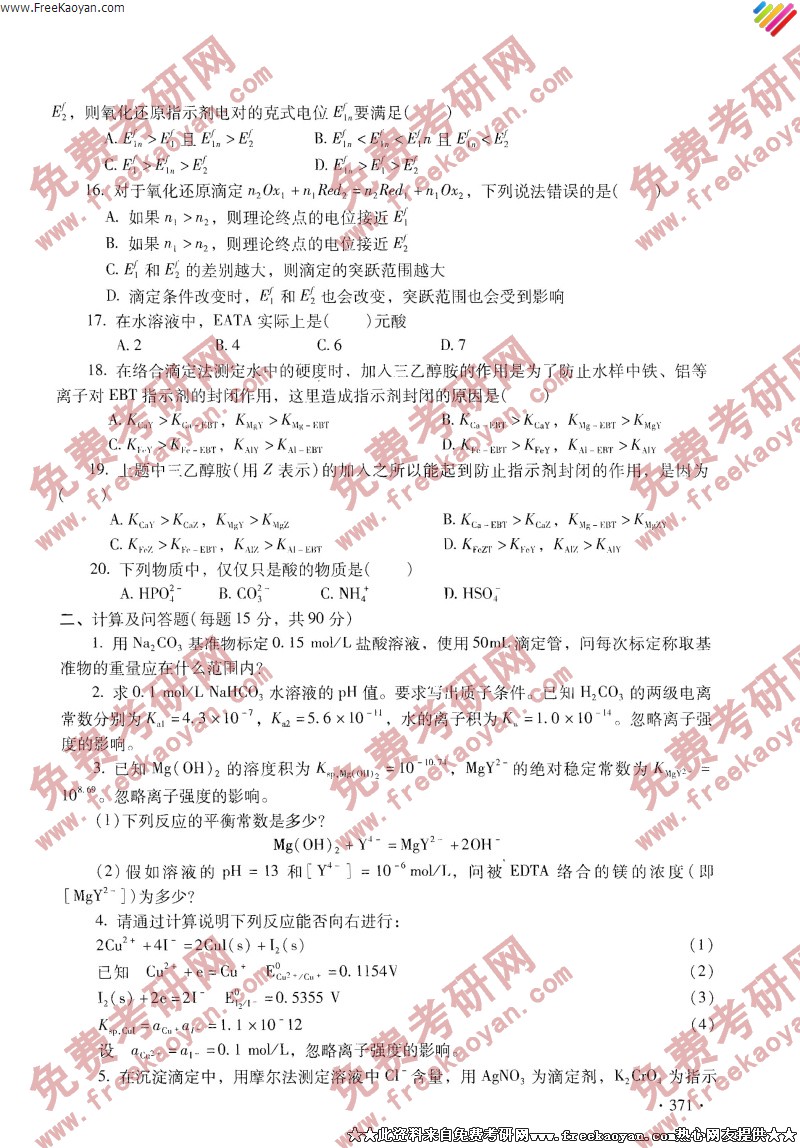 专业课考研经验 本站小编 FreeKaoyan 2018-01-22武汉大学2005年考研真题-地籍测量学