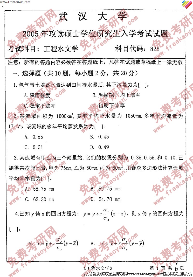 专业课考研经验 本站小编 FreeKaoyan 2018-01-22武汉大学2005年考研真题-地籍测量学