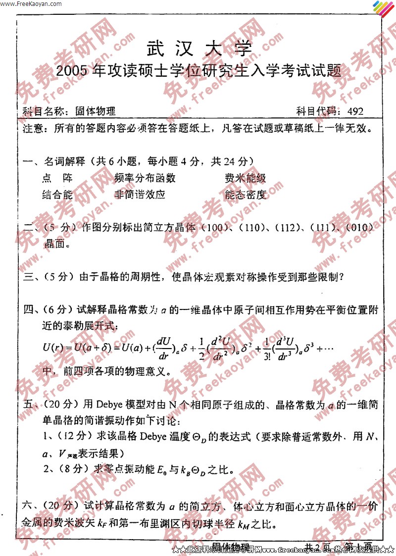 专业课考研经验 本站小编 FreeKaoyan 2018-01-22武汉大学2005年考研真题-典籍与文化综合知识