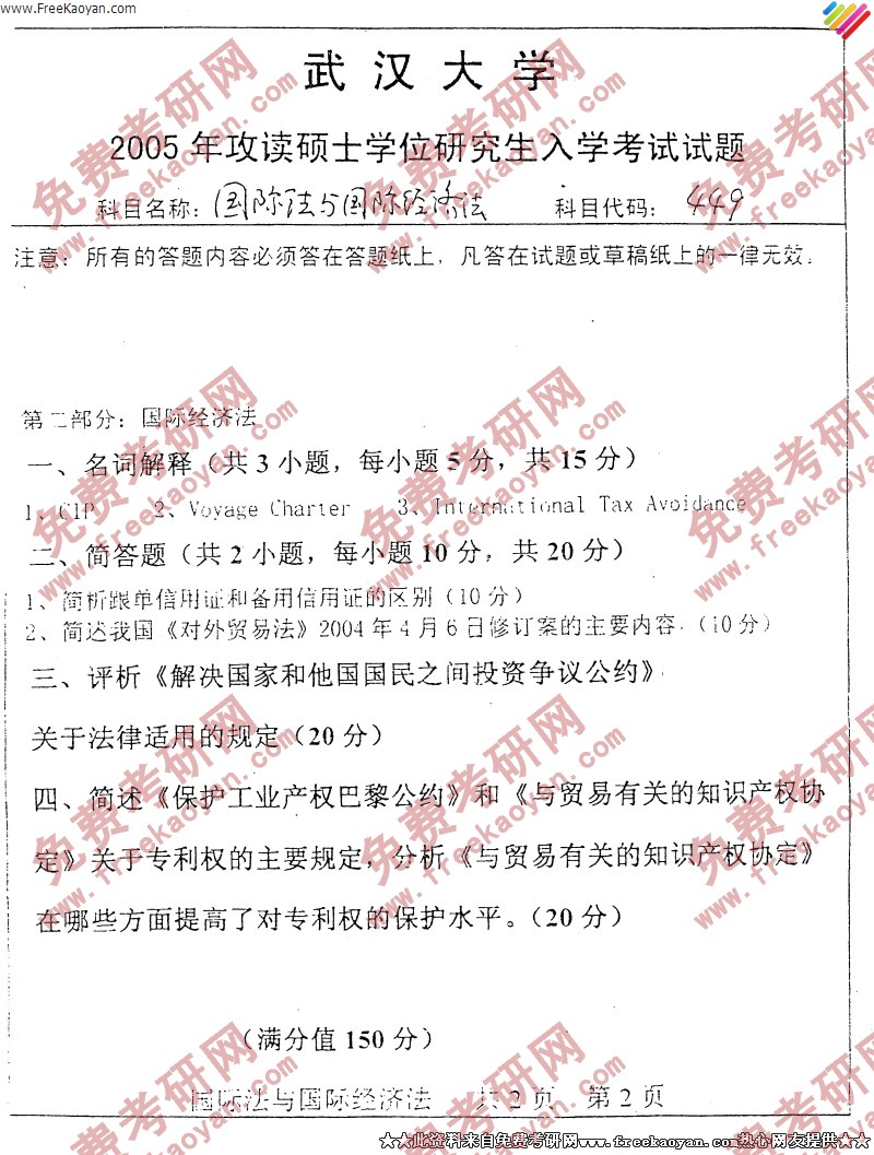 武汉大学2005年考研真题-国际法与国际经济法(2)