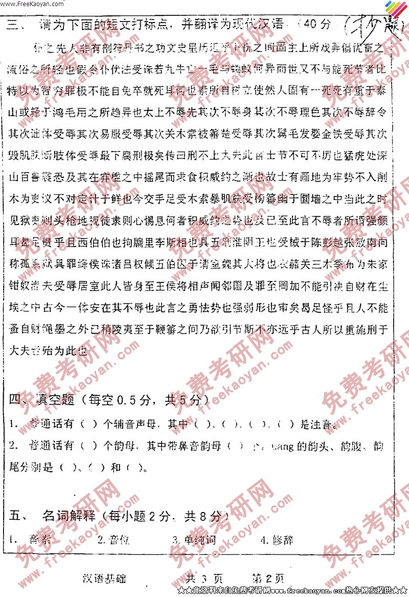 专业课考研经验 本站小编 FreeKaoyan 2018-01-22武汉大学2005年考研真题-古代汉语