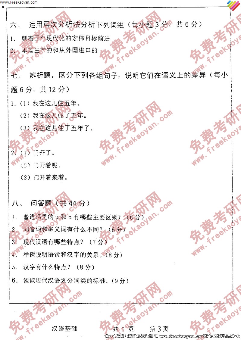 武汉大学2005年考研真题-汉语基础(3)