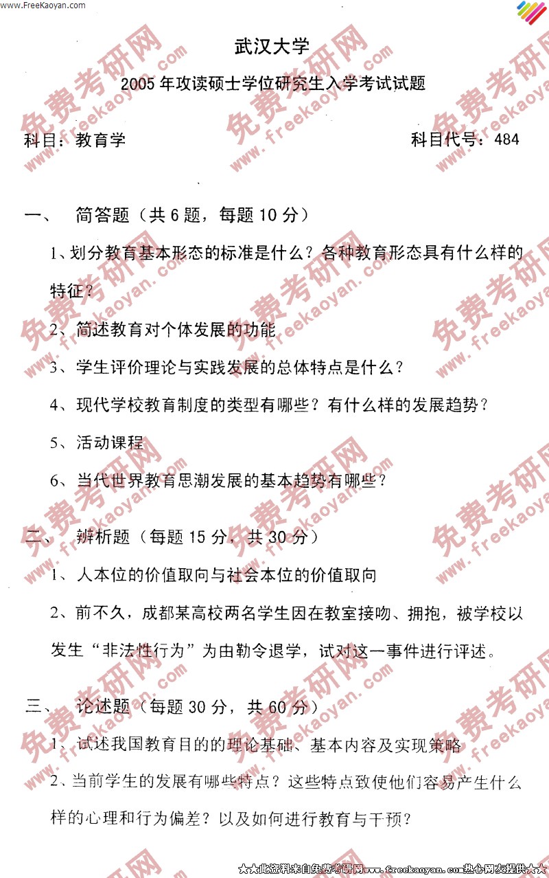 相关话题/武汉大学 考研真题 教育学