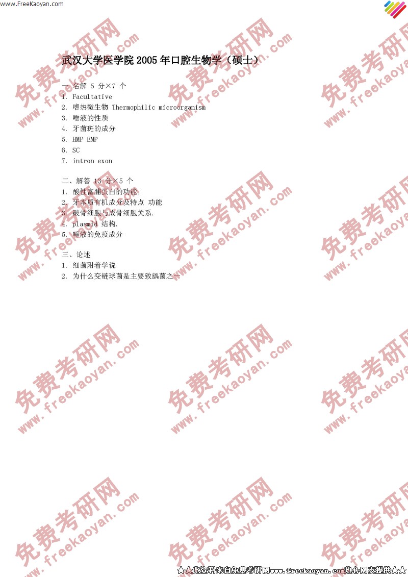 专业课考研经验 本站小编 FreeKaoyan 2018-01-22武汉大学2005年考研真题-计算机基础