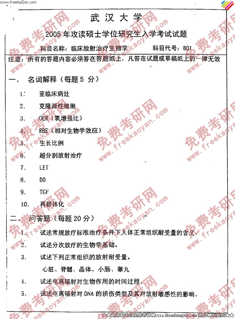 专业课考研经验 本站小编 FreeKaoyan 2018-01-22武汉大学2005年考研真题-教育学