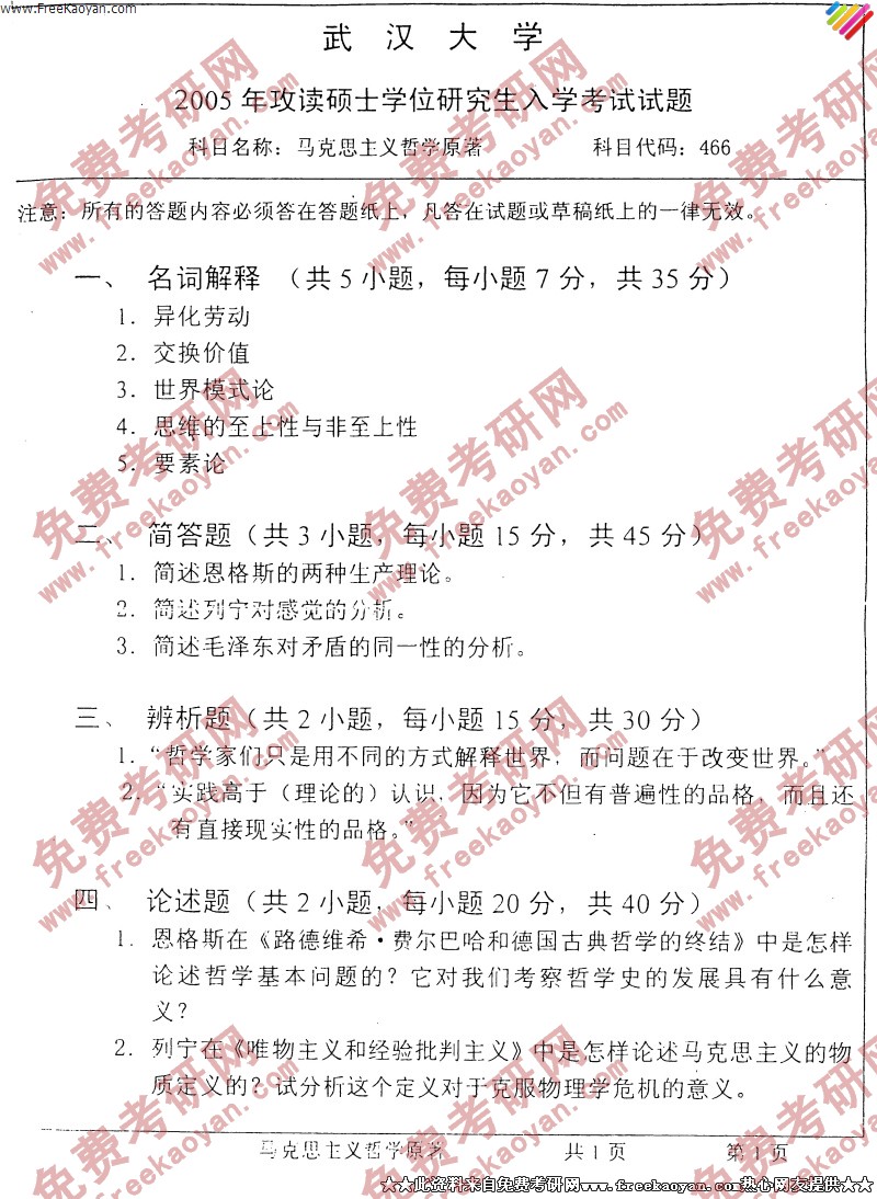 相关话题/考研真题 马克思主义哲学 武汉大学 原著