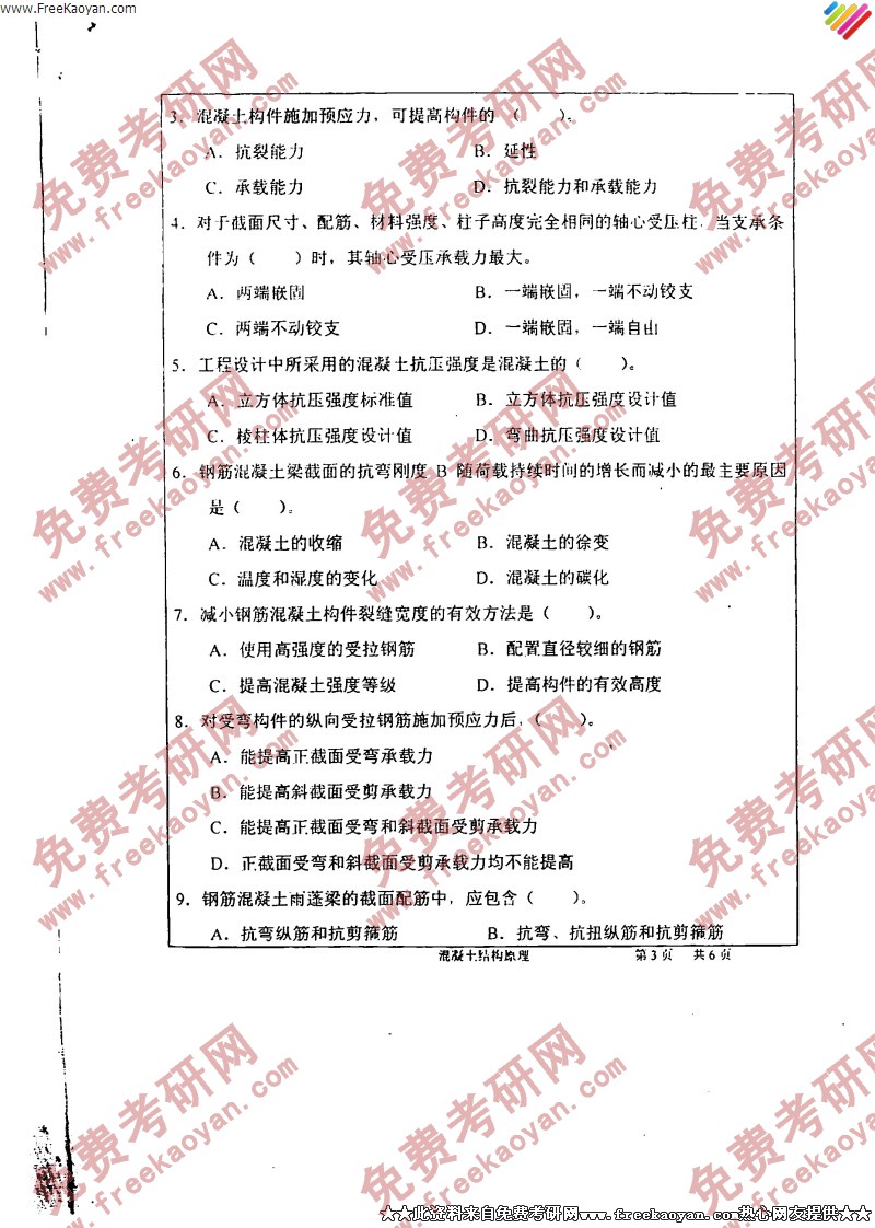 武汉大学2005年考研真题-凝土结构原理(3)