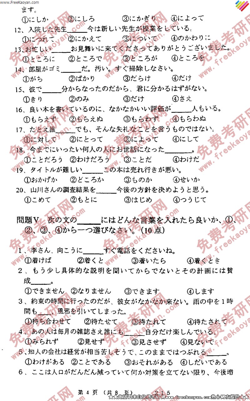 武汉大学2005年考研真题-日语(4)