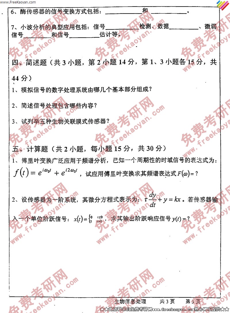 专业课考研经验 本站小编 FreeKaoyan 2018-01-22武汉大学2005年考研真题-生命科学