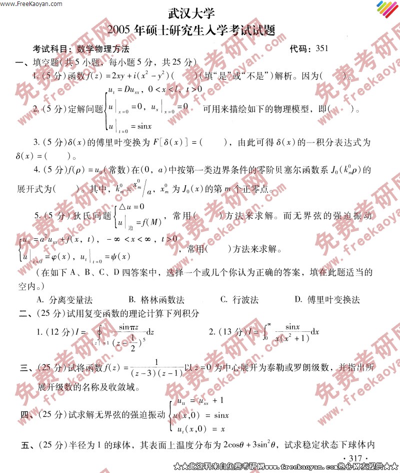 相关话题/数学 考研真题 武汉大学 物理 方法