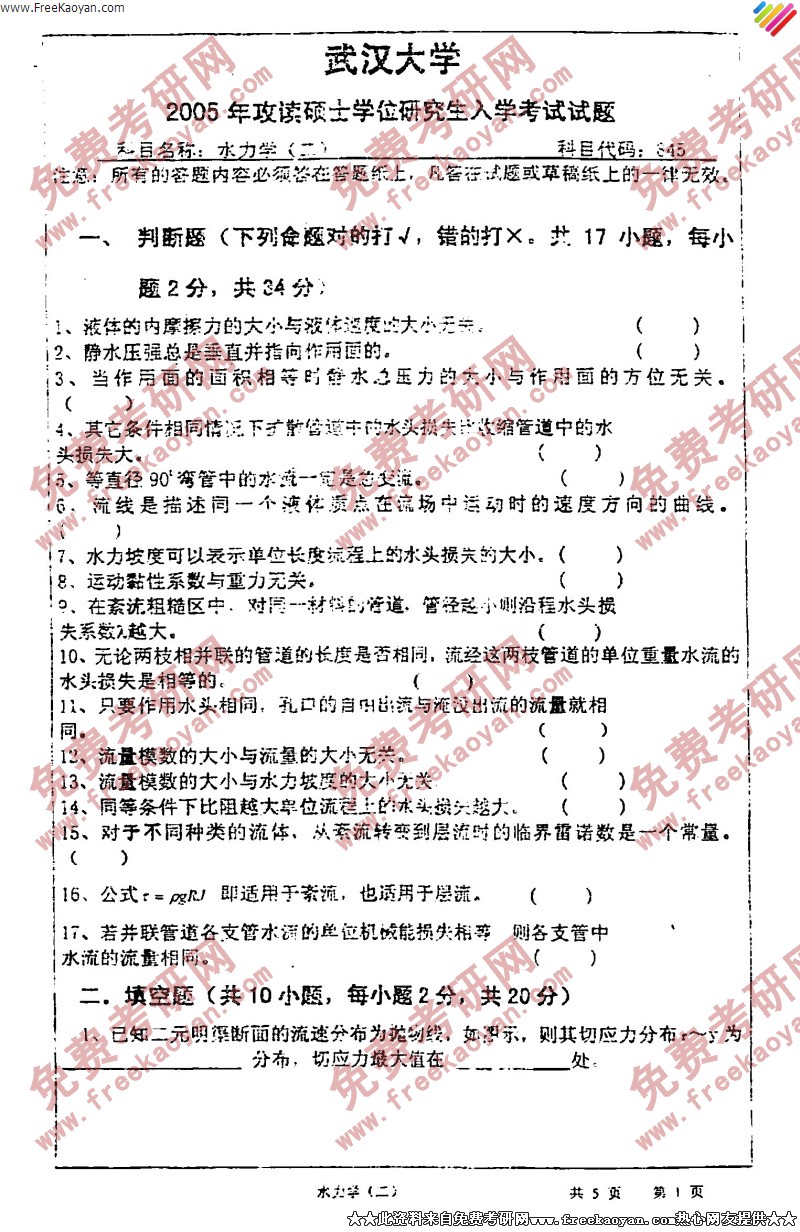 专业课考研经验 本站小编 FreeKaoyan 2018-01-22武汉大学2005年考研真题-普通心理学(345)