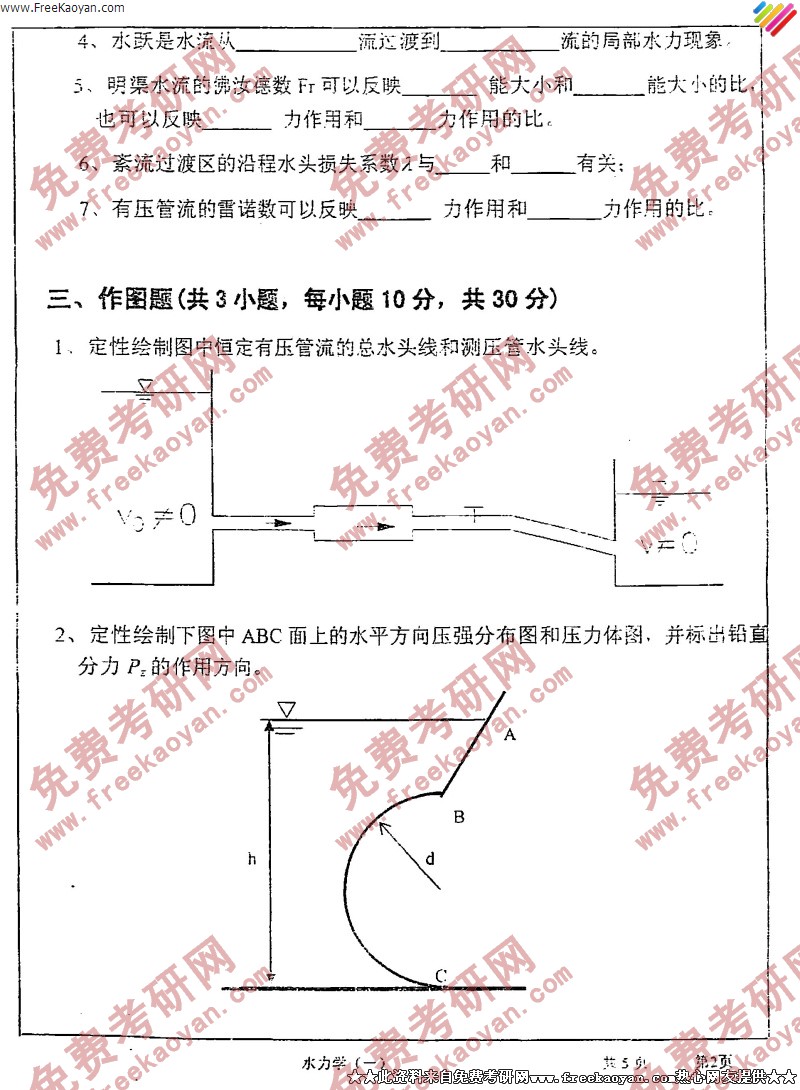 专业课考研经验 本站小编 FreeKaoyan 2018-01-22武汉大学2005年考研真题-水理学(二)