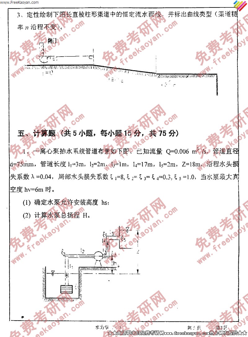 专业课考研经验 本站小编 FreeKaoyan 2018-01-22武汉大学2005年考研真题-水理学(二)