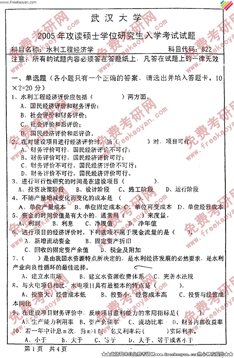 相关话题/考研真题 武汉大学 经济学 水利水电