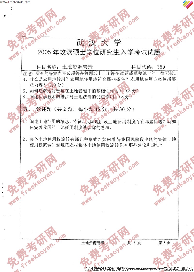 专业课考研经验 本站小编 FreeKaoyan 2018-01-22武汉大学2005年考研真题-水利水电经济学