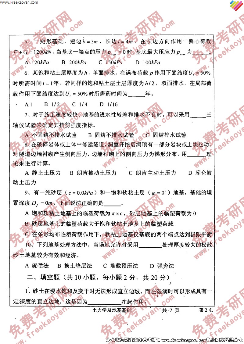 相关话题/考研真题 土力学 武汉大学 地基基础