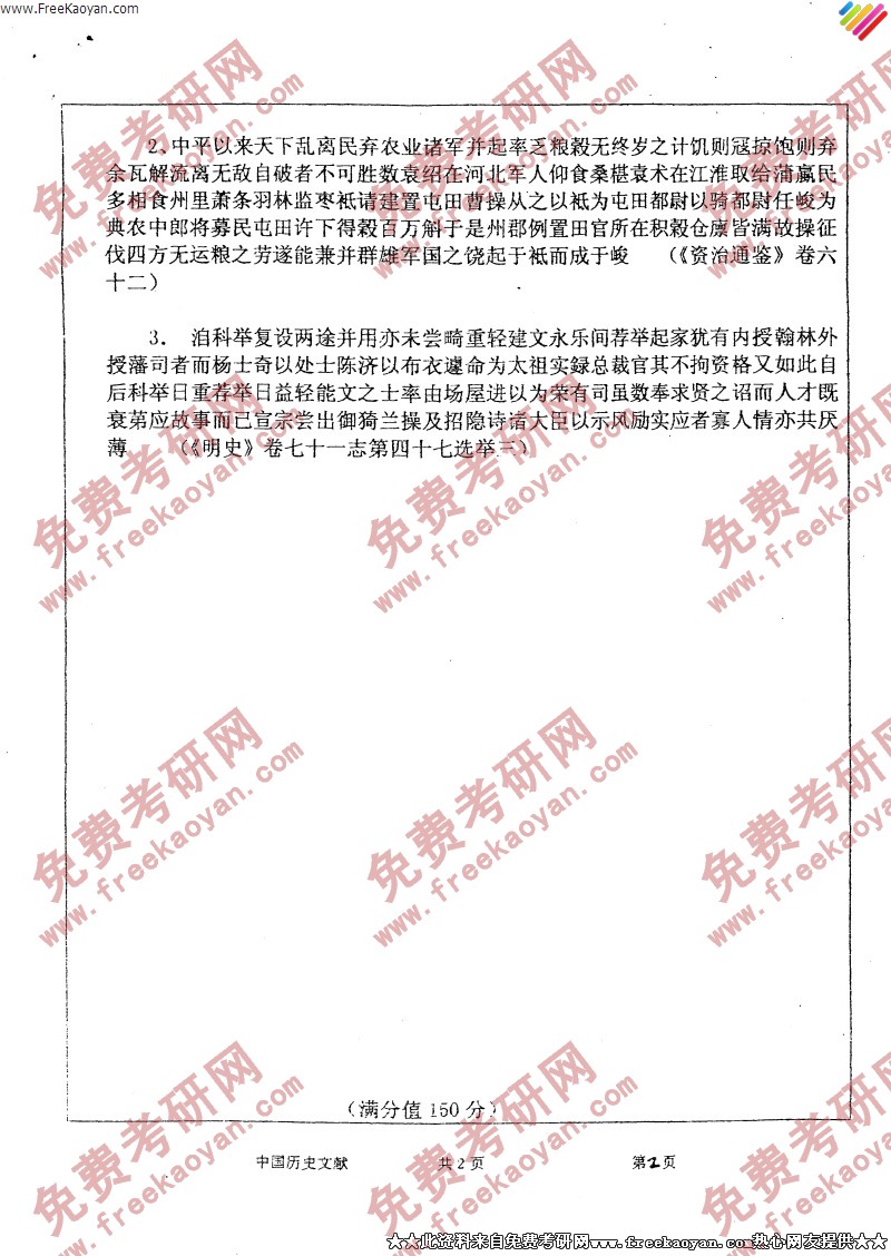专业课考研经验 本站小编 FreeKaoyan 2018-01-22武汉大学2005年考研真题-中国古代史