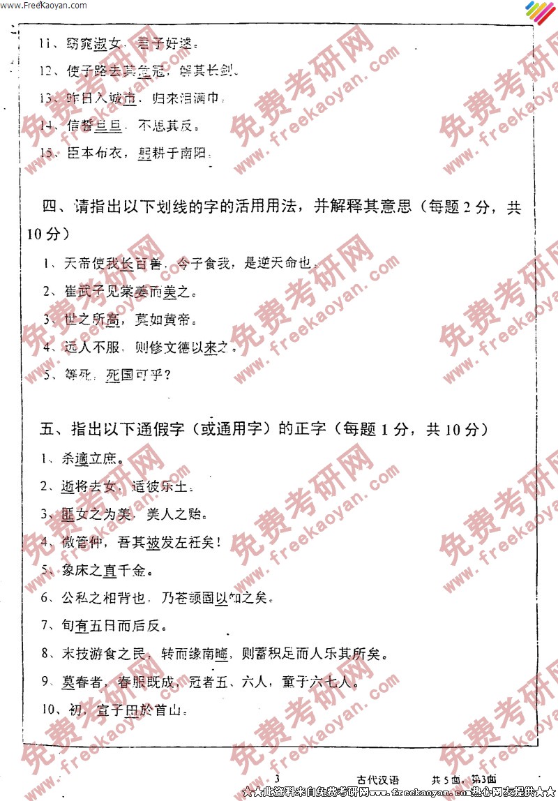 专业课考研经验 本站小编 FreeKaoyan 2018-01-22武汉大学2005年考研真题-中国历史文献