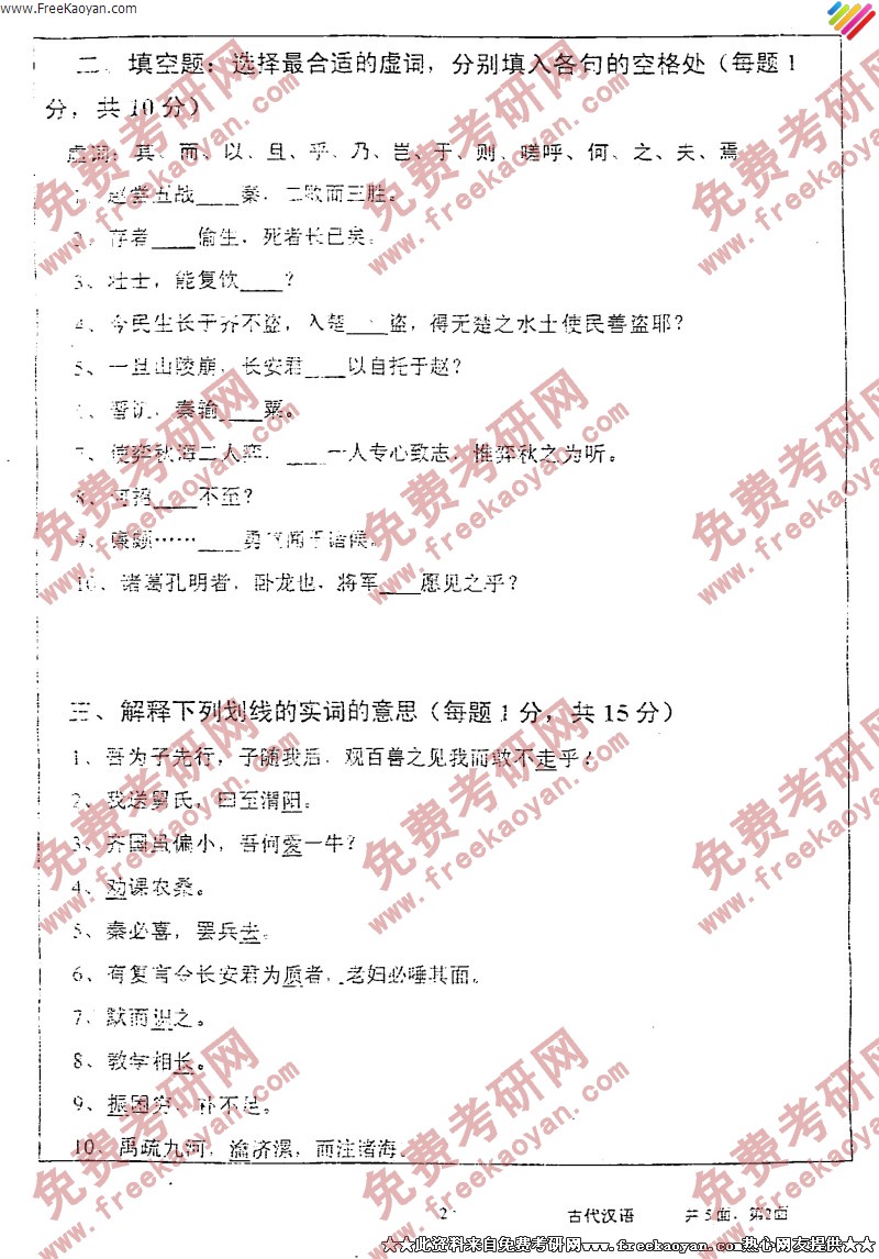专业课考研经验 本站小编 FreeKaoyan 2018-01-22武汉大学2005年考研真题-中国古代文学