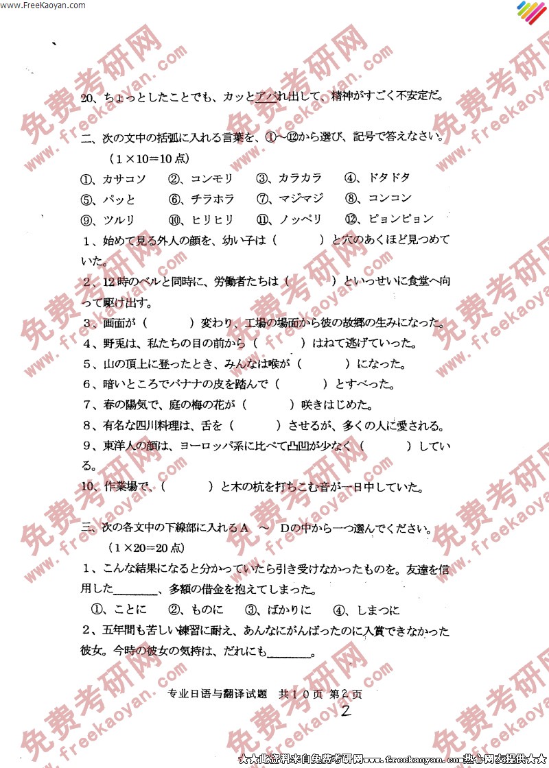 武汉大学2005年考研真题-专业日语与翻译(2)