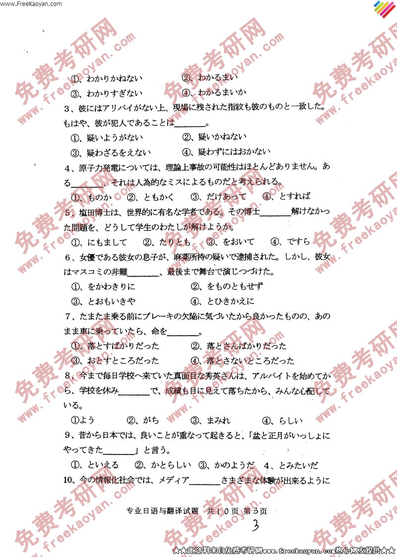 武汉大学2005年考研真题-专业日语与翻译(3)