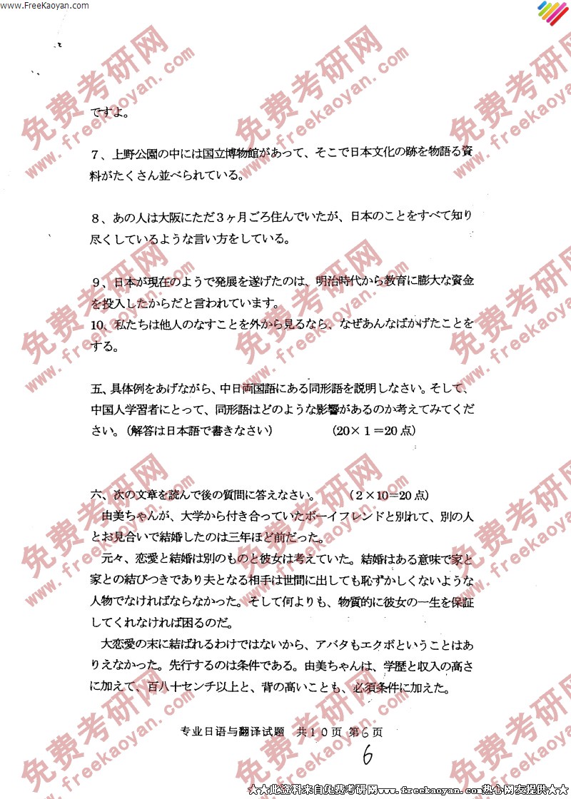 武汉大学2005年考研真题-专业日语与翻译(6)