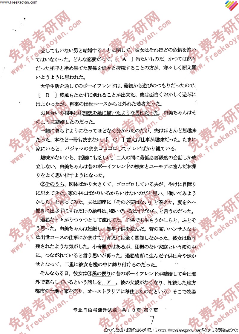 武汉大学2005年考研真题-专业日语与翻译(7)