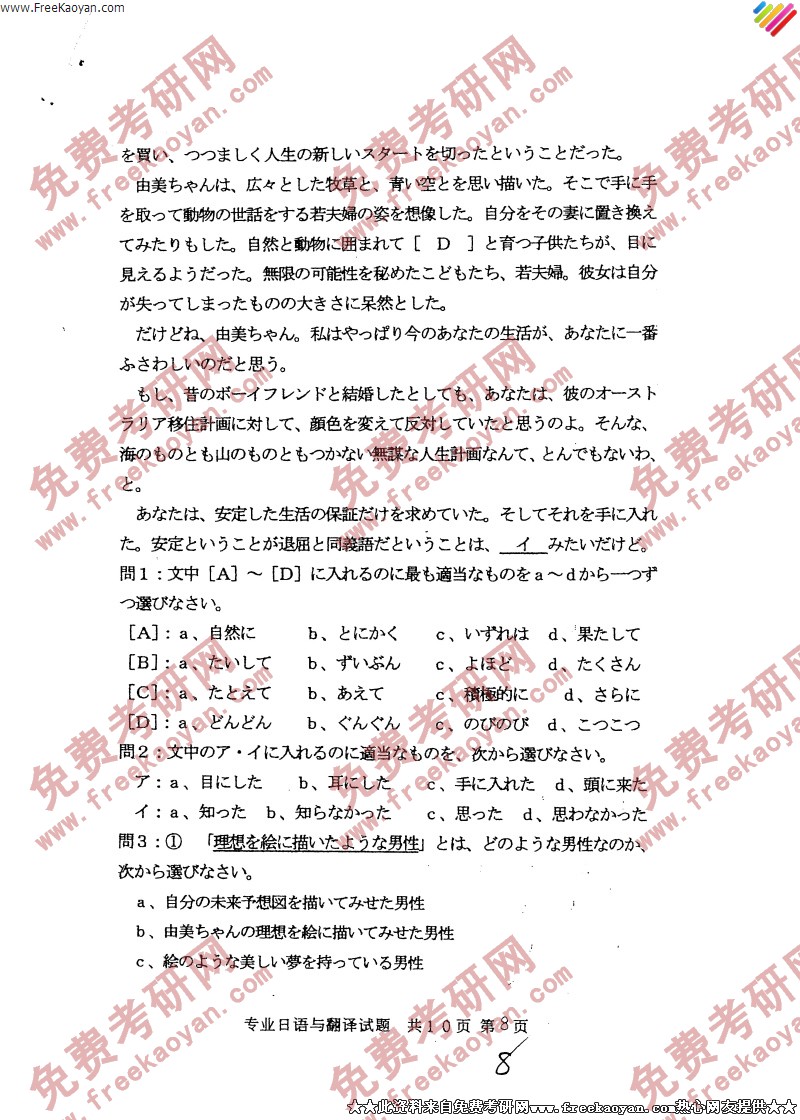 武汉大学2005年考研真题-专业日语与翻译(8)