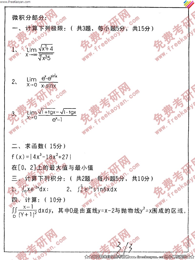 专业课考研经验 本站小编 FreeKaoyan 2018-01-22武汉大学2005年考研真题-中国水力学