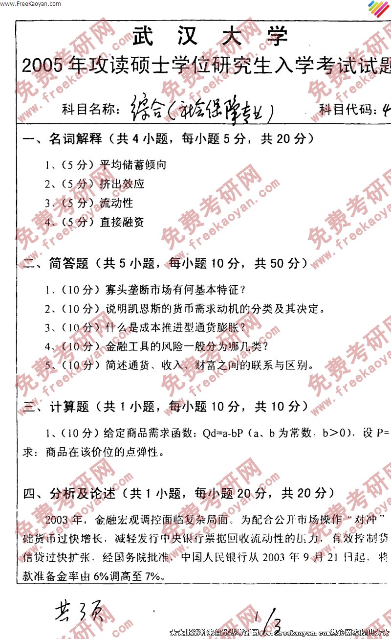 武汉大学2005年考研真题-综合(社会保障)(3)