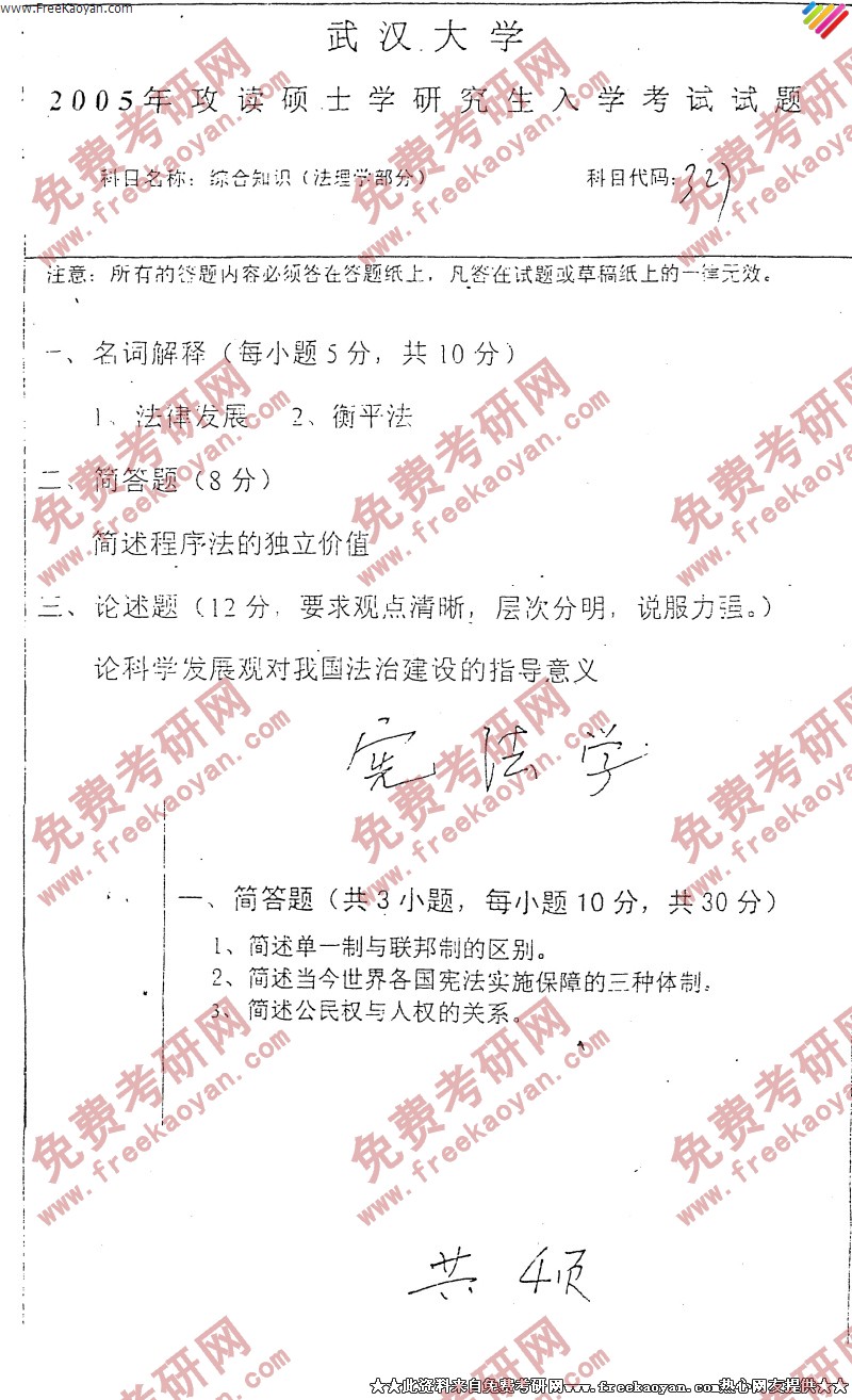 武汉大学2005年考研真题-综合知识(法学)-2005