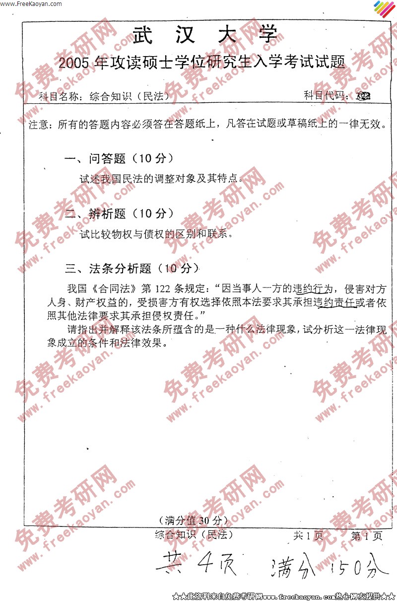 专业课考研经验 本站小编 FreeKaoyan 2018-01-22武汉大学2005年考研真题-综合知识-2005