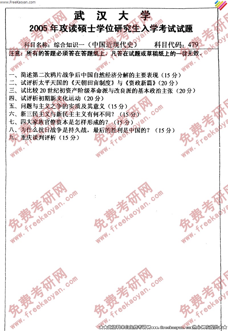 专业课考研经验 本站小编 FreeKaoyan 2018-01-22武汉大学2005年考研真题-综合知识-2005
