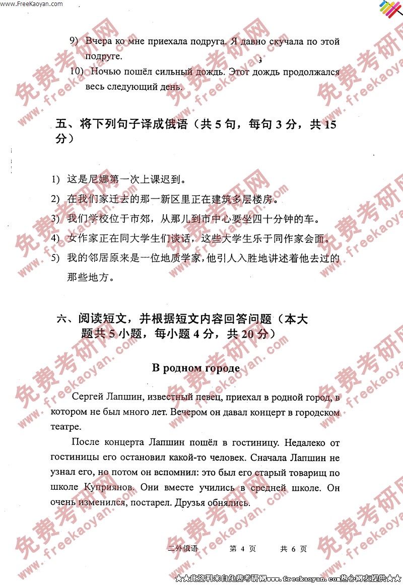 武汉大学2006年考研真题-俄语(二外)(4)